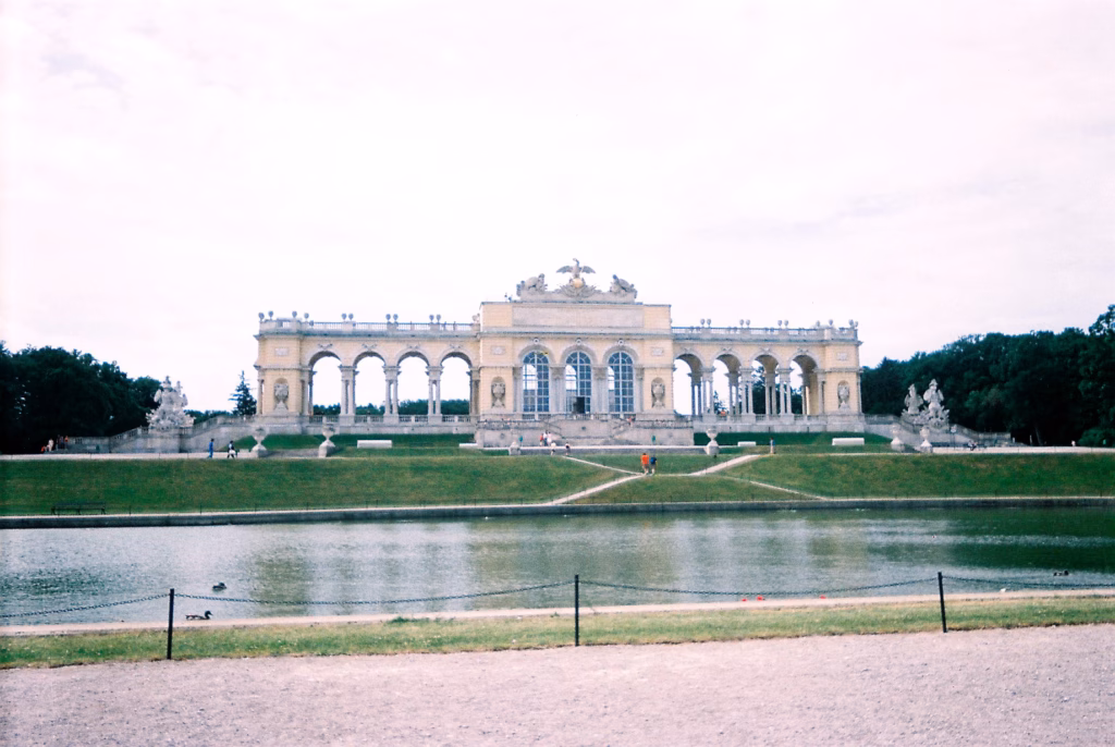 Stvarno su carevi živeli carski. U parku džogiraju obični građani. Opušteno. Ima i lavirint, da se juriš sa plemkinjama. Nema ih više, ali osećam kakva je luda žurka bila među plemstvom kada “uvijaš” neku sa onim podsuknjama… Šta, nisu se kupali baš mnogo? Uh, život nije uvek poezija. Iza parka nalaze se fontane, iza fontana nalazi se Glorijeta (Gloriette), luk posvećen pobedi.