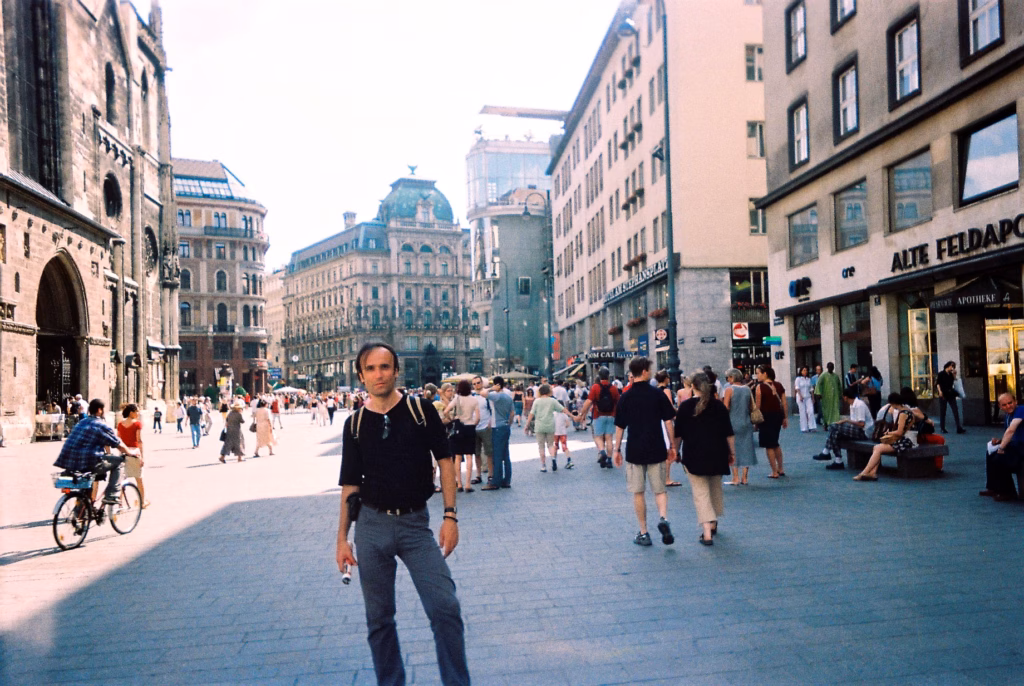 Posle 1955. godine su se okupacione snage povukle, a Austrija je ostala tampon-zona između dva suprotstavljena pakta, baš kao što smo to bili i mi; te otud izvanredni odnosi Austrije i SFRJ celih 45 godina… Zašto govorim o istoriji? Pa, zato što ovde istorija pulsira na svakom koraku. Iako je ovo stvarno grad budućnosti, iako u metrou i na glavnom trgu možeš sresti ljude svih nacija, boja i fizionomija, veoma se lako, u sekundi, možeš osetiti delom Štrausovih “žurki” sa valcerima, i prijema na dvoru… Ili boemštine Mocartovih kafana, gde je Volfi tugu za ćaletom utapao u piću, ostavljajući voljenu Stanci kod kuće! Grad liči na muzej, ustvari. Ovo je grad gde je istorija sve. Ili barem veći deo ponosa njegovih žitelja. Mada je jaaako savremen. Što ćemo i da vidimo, sad.