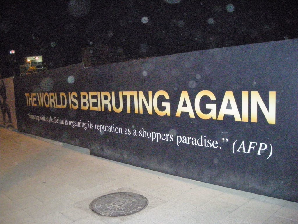 Pomenuta reklama na panou: “The World Is Beiruting Again”: upoređuje “zlatne godine”, 50-e i 60-e, sa sadašnjim građevinskim i turističkim bumom.