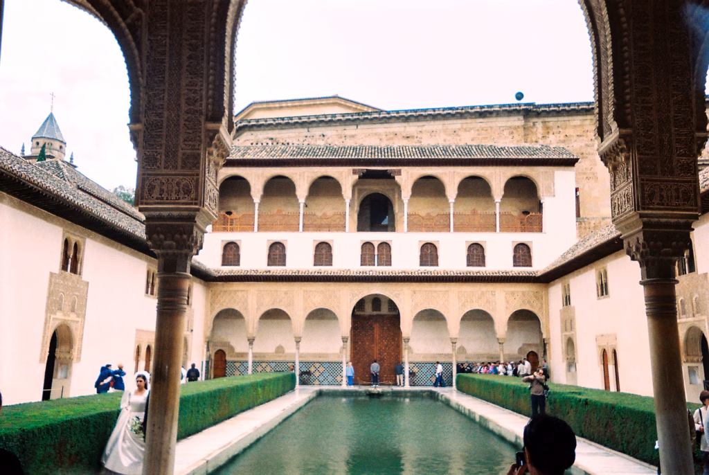 Najfotografisanije mesto Alhambre je Dvorište Mirti (Patio de Comares), sa bazenom iz koga voda konstantno utiče na jednom, a ističe na drugom kraju. Lukovi vode do raznih vrata, raznih ulaza i izlaza u pojedine sale, sobe, prostorije za molitvu, bivše džamije… pravi lavirint za vrtoglavicu. U svakom trenutku se iznad glava može videti neka od rumenih kula koje iz daljine podsećaju na to mistično doba, kada su arhitekti stvarali lepotu, a žubor vode bio muzika…. Sjajno.