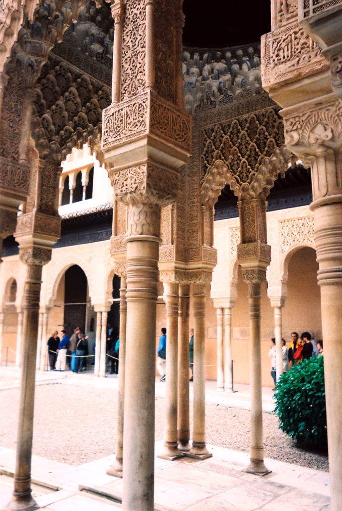 Kažu da su Mavri smatrali da je žubor vode, koja utiče i ističe iz raznih bazena, fontana i vodoskoka jedna vrsta muzike za sebe, koja podstiče spokojstvo, bolje razumevanje sveta oko sebe i života, i razmišljanje… U pravu su. Idealan lek za stres, kog, izgleda, u to vreme nije ni bilo. Većinu arapskih palata je podigla dinastija Nasrida, između 1335. i 1410. godine, u poslednje, i zlatno doba na zalasku moći Mavara u Evropi, obogativši ih gipsanim ornamentima svud po zidovima.