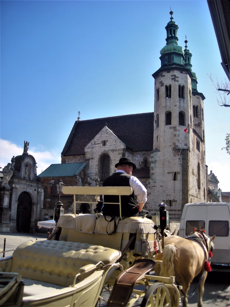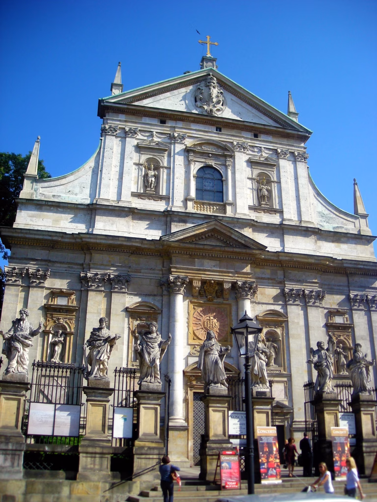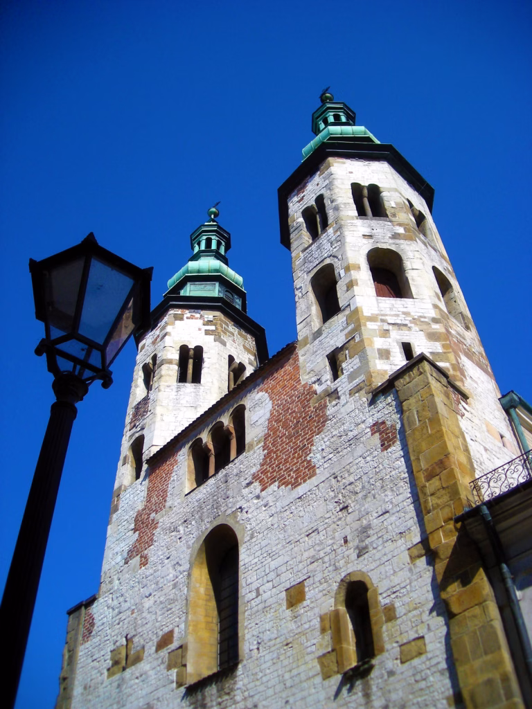 Veoma upečatljive su dve crkve koje stoje doslovno jedna pored druge: jedna je veoma drevna po svom izgledu, i izgled ne vara – u pitanju je crkva Sveti Andrej iz 1086. koja je upečatljivo romanička, i predstavlja jedinu građevinu Krakova koja je preživela užasni tatarski napad iz 1241. Pored nje – sušta suportnost – Sveti Petar i Pavle, iz 17. veka, prva barokna crkva u Poljskoj. Prva stroga, druga raskošna, prva mistična, druga svetovna. Dva lica Poljske u 20 metara.