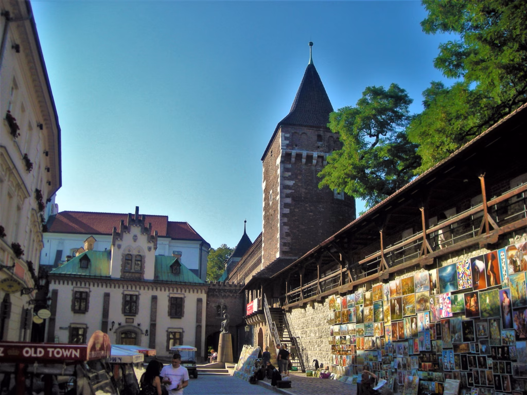 Oko kapije se nalaze ostaci zidina, slikari prodaju svoje umetnine, kafei rade punom parom, a iza zidina su parkovi i kvart Klepaž, mirniji i noviji, sa tržim centrom Galeria Krakowska i železničkom i autobuskom stanicom, dakle, sa konkretnim stvarima koje nam trebaju za svakodnevicu.