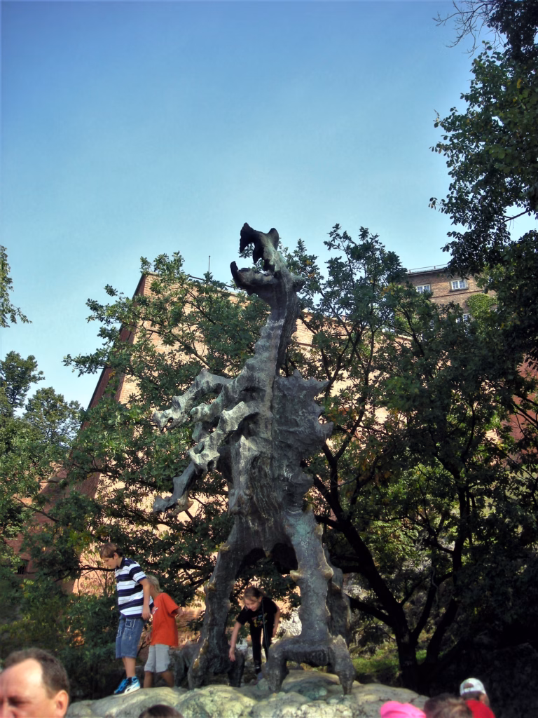 Ne kaže se kako ga je nadmudrio i da li je to nadmudrivanje uključivalo umetanje mačeva u zmajevo tkivo, ali šta sad. Krakov neskromno nazva grad po sebi, ali nekako mi se čini da je zmaj pobedio. Danas imamo statuu zmaja koju ne možeš da slikaš jer se dečurlija po njoj vere, ali nigde nema statue Kraka. Zmaj je ispao veća faca.