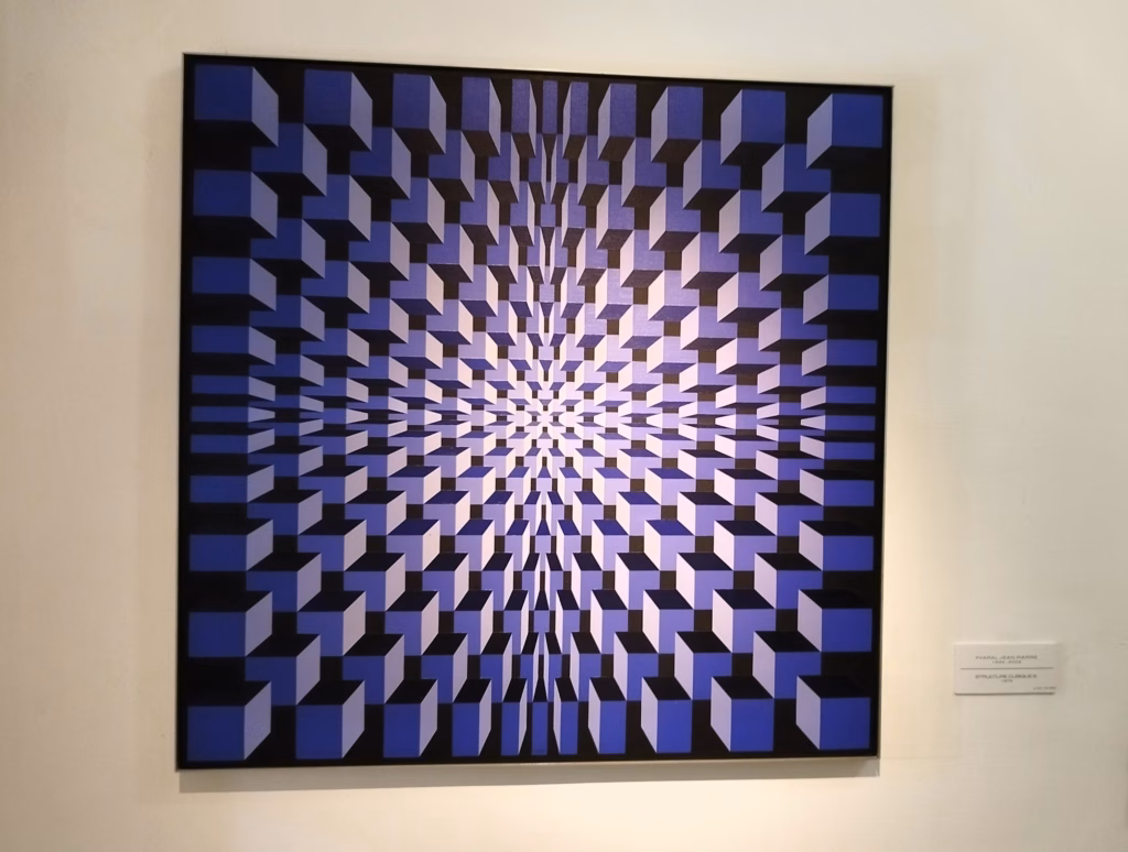 Ovde se jasno vidi Vazarelijev metod: serijalnost, varijacije istih modula, pomeranja za nijansu, ugao ili ritam.