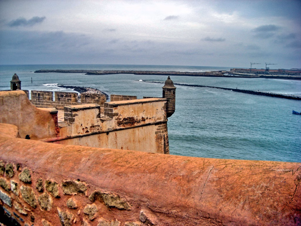 Upada u oči da Marokanci izgleda ne štede na bojama i zagasito smeđecrvena boja tvrđave je savršeni kontrast plavom nebu i moru i savršeno uklopljena u smeđecrveni pesak ogromne plaže na kojoj dominiraju veliki, atlantski talasi i desetine surfera, jer Maroko jeste, zbog vetrova Atlantika, surferski raj.