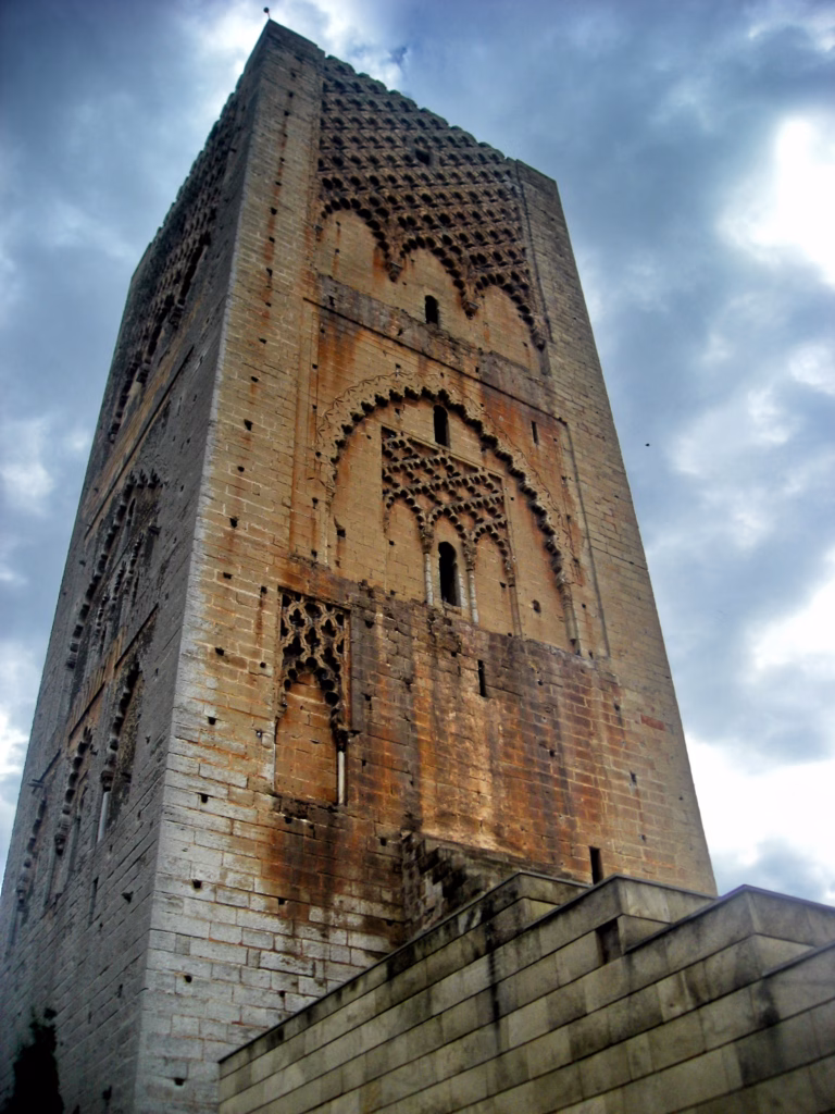 Hasanova kula je lepa i crvena, i predstavlja minaret nedovršene džamije koji je započeo već spominjani Mula Jakub koji je napustio svoje zemaljsko telo 1199. i time je i gradnja džamije prestala. Hasanova kula je trebala da bude najviši minaret već pominjane potencijalno najveće džamije na svetu, ali je toranj dosegao svega 44 m, što je jedva malo više od pola visine koju ne Mula Jakub nameravao da joj podari (86 m), a svuda unaokolo su ostali i stubovi koji su, kao kod Džamije-Katedrale u Kordobi trebali da pridržavaju krov projektovane džamije.