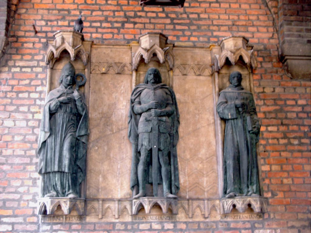 Za one još sklonije istraživanju, ili naprosto sklonije gotici, tu su i neogotičke skulpture mađarskih blaženih, ili mučenika za veru, uklesane u zidove Univerziteta… Mada ogromne saksije sa cvećem uveliko razbijaju tmurnost ambijenta Katedralnog trga, mora se priznati da je gotički moćan, tako mrk i dostojanstven, sa svojim srednjovekovnim patuljcima na astronomskom satu, sarkofazima mučenika, prelomljenim lukovima, ostacima bazilika… Zaista moćan.