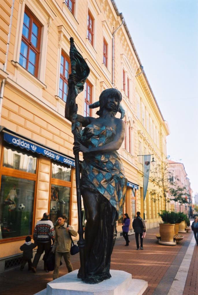Na kraju ulice Karas nalazi se čitav niz “spontanih statua” (koje, uostalom, vise sa svih strana, poput starinskih firmi, sa fasada), kao što su “Violinista”, ili “Majka, devojčica i pas”, na radost dece, ali i starijih, koji najzad shvataju poentu izraza “l’art pour l’art”. Umetnost radi umetnosti, lepota radi lepote sáme. Ne znače baš ništa, ali su lepe. Spontane skulpture, pa i kada su veštice na metlama sa fasada ulice Karas, lep su doprinos spokojstvu i gotovo dečjoj razigranosti Szeged-a, kako ga Mađari inače nazivaju… Nemci i mi ga zovemo isto: Segedin; a ko je to ime gradu “prvi nadenuo”, ostaje tajna. Hmmm… možda ne i za lingviste.