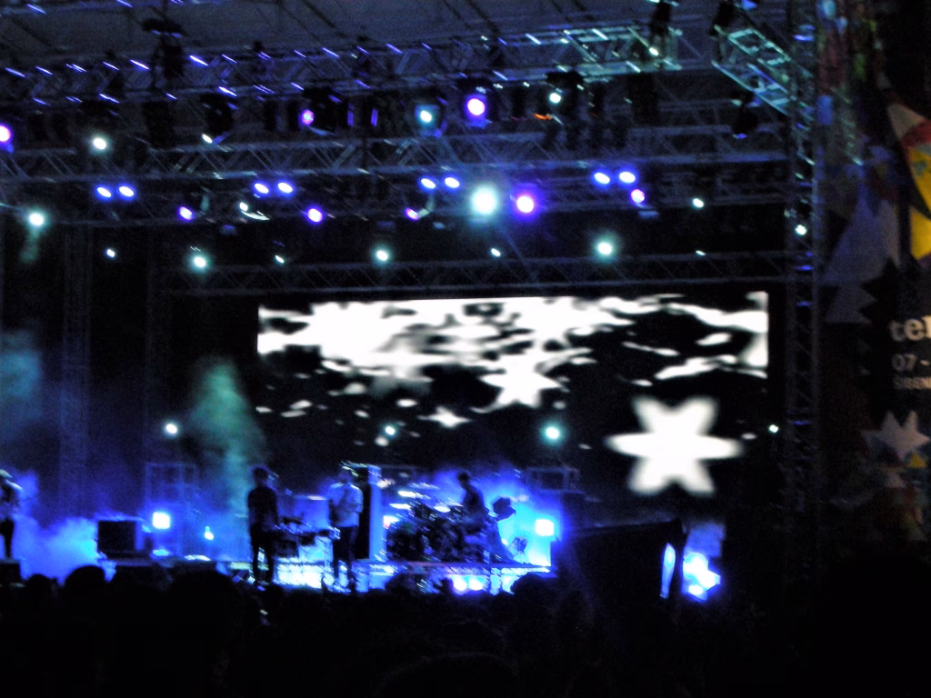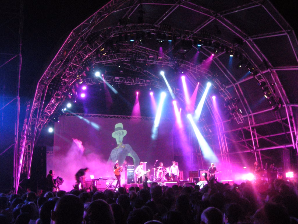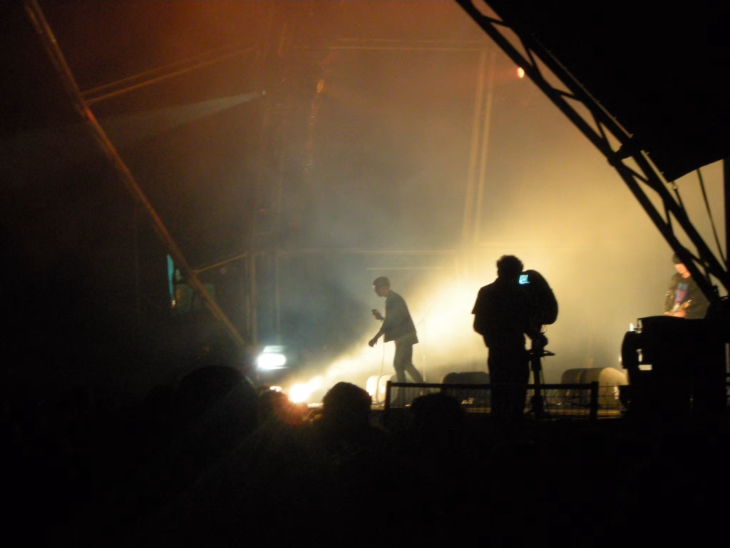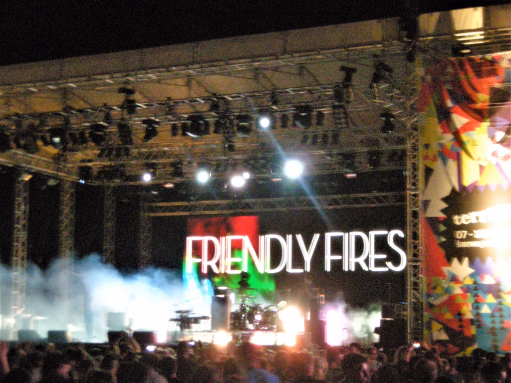 Anna Calvi je novo čudo britanske female-pop scene, poprekog pogleda, pomalo nalik na mešavinu Amy Winehouse, Lane Del Rey i nekih žestokih devojaka gitarske scene, poput Siouxie iz The Bansheesa ili PJ Harvey, ona meša seksepil 30-gišnjakinje (da, prvi album izdala sa 28, i sad je taj album nominovan za sve moguće nagrade) sa tugom, nespokojem, žestinom i nežnošću žene-gitariste koja je potpuno ženstvena. Usto je i modna ikona, i Gucci se lomi da je odene. Odmah potom, The Ting Tings, možda i vrhunac večeri i celog festivala. Katie White. Pevačica. Devojka sa izrazito belim tenom, iz Mančestera, sa bledim, bledim butinama na koje je natakla šorts iz 1975. sa socijalističkih časova fizičkog (sada jako vintage i hipsterski i trendi, da), sa plavom kosom ispod koje viti crna (vezana u rep), Katie je skakala, prašila gitaru i pevala polu-punk, polu srećne pesme savršenog popa, pomalo isprekidane. Pratio ju je jedan bubnjar, potpuno nalik na The White Stripes. Gitaristkinja koja peva i bubnjar koji peva. I onda svi poskaču da sviraju sintizajzere. Katie ruši mikrofone. Ima pomoćnika koji pomaže da se mikrofoni postave na svoje mesto. Skida joj gitaru sa leđa, kao gaćice, nadole, i ona se izmigolji iz gitare koja ostane poluzgažena na patosu i nastavlja da skače i peva. “Veselje lijte iz tela u telo!”, rekao je Majakovski onomad. E, ovo veselje se lije iz tela u telo. Iz njenog u naša. Friendly Fires su zvezde večeri, na neki način, pravi hipsterski savremeni britanski bend koji zna da umiksuje stil, veselje, probleme kišnog ostrva i izgubljene ljubavi sa maštanjem kako će surfovati na havajskom vazduhu.
