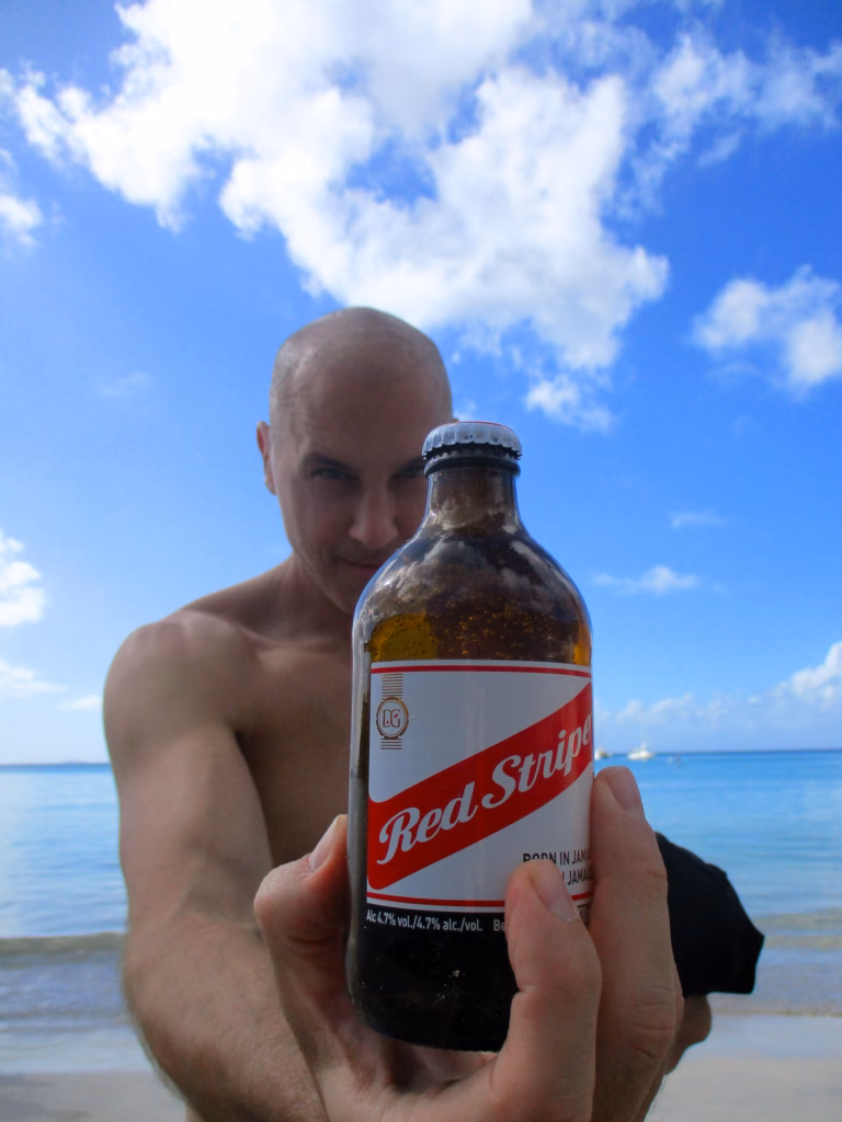 Обично y разним бојама, и развози људе по плажама. Фиксно 12 долара, и ми се цењкајући само нервирамо губећи време за провод на плажи. Купили смо јамајканско пиво. Кажу да је најбоље. Идемо у Кејн Гарден Беј, преко брда.